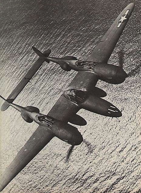 Le P-38G Lightning est un avion de chasse de la Seconde Guerre mondiale, fabriqué à partir de 1939 par la firme Lokheed. Il fut produit dans ses différentes versions à plus de dix mille exemplaires jusqu’en 1945, date de l’arrêt de sa fabrication. Les Allemands, lors de la seconde guerre mondiale, le surnommèrent «le diable à queue fourchue». Il était propulsé par deux moteurs Allison V-1710 de 12 cylindres en « V », développant 1725 cv chacun. L’avion mesurait 11,53 mètres de long sur 15,85 mètres d’envergure pour un poids à vide de 5,8 tonnes. Avec un plafond maximal de 13400 mètres et un rayon d’action de 4200 km, le P-38 se plaçait dans le haut du classement des meilleurs chasseurs. Il emportait 1 canon de 20 mm, 4 mitrailleuses de 12,7 mm et pouvait transporter 1 torpille, 2 bombes ou 10 roquettes de 127 mm.