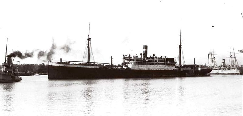 Cargo mixte (passagers/fret) construit par les chantiers Reiherstieg Schiffswerfte & Machinenfabrik à Hambourg, en Allemagne, l’Umbria a été lancé au début 1912 sous le nom de Bahia Blanca, pour la compagnie Hamburg Südamerikanische Dampfschifffahrts Gesellschaft. Long de 154 mètres pour 18 mètres de large, il jaugeait 10 000 tonnes et était propulsé par 2 machines à vapeur de 3 cylindres à triple expansion développant 848 cv sur 2 hélices, lui donnant la vitesse de 13 nœuds.