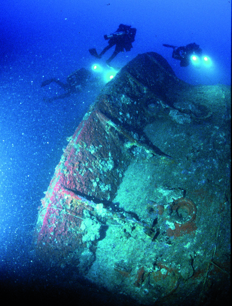 Notre équipe de plongée recycleur se composait de huit plongeurs et leur intention était de photographier et de filmer l’épave à une profondeur maximale de 120 mètres.