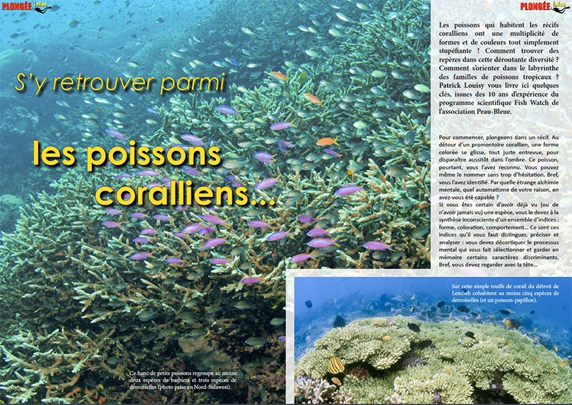 Les poissons qui habitent les récifs coralliens ont une multiplicité de formes et de couleurs tout simplement stupéfiante ! Comment trouver des repères dans cette déroutante diversité ? Comment s’orienter dans le labyrinthe des familles de poissons tropicaux ? Patrick Louisy vous livre ici quelques clés, issues des 10 ans d’expérience du programme scientifique Fish Watch de l’association Peau-Bleue.